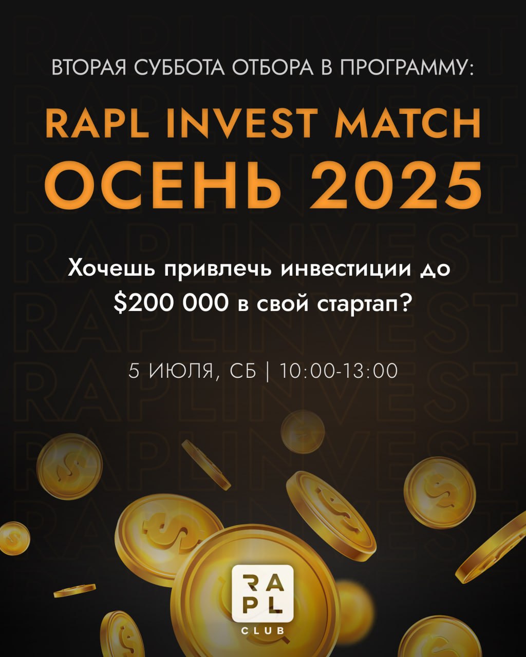 Хочешь привлечь инвестиции до $200 000 в свой стартап? Вторая суббота отбора в программу RAPL Invest Match: Осень 2025